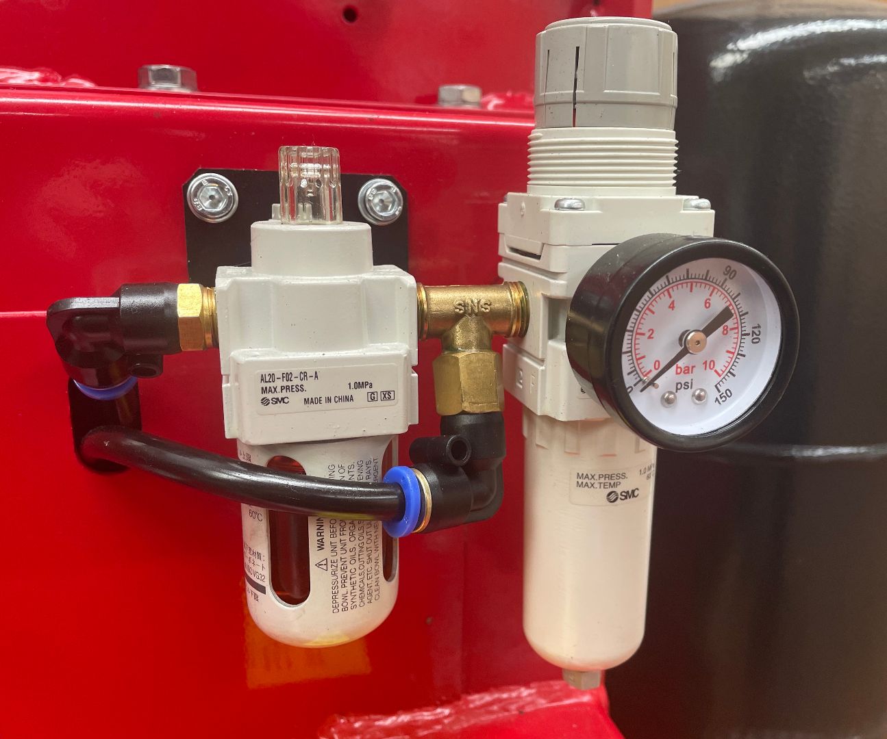 Supplied standard with a pedal controlled inflation gauge and tubeless air blaster system.